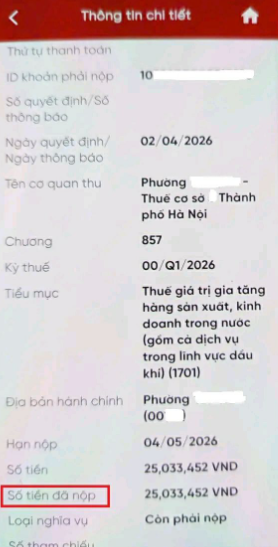 Trường hợp 2: Khoản thuế đã nộp thành công