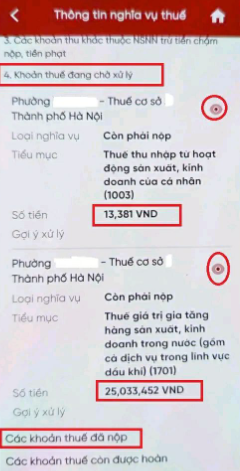 → Tiếp tục chọn Thông tin nghĩa vụ thuế