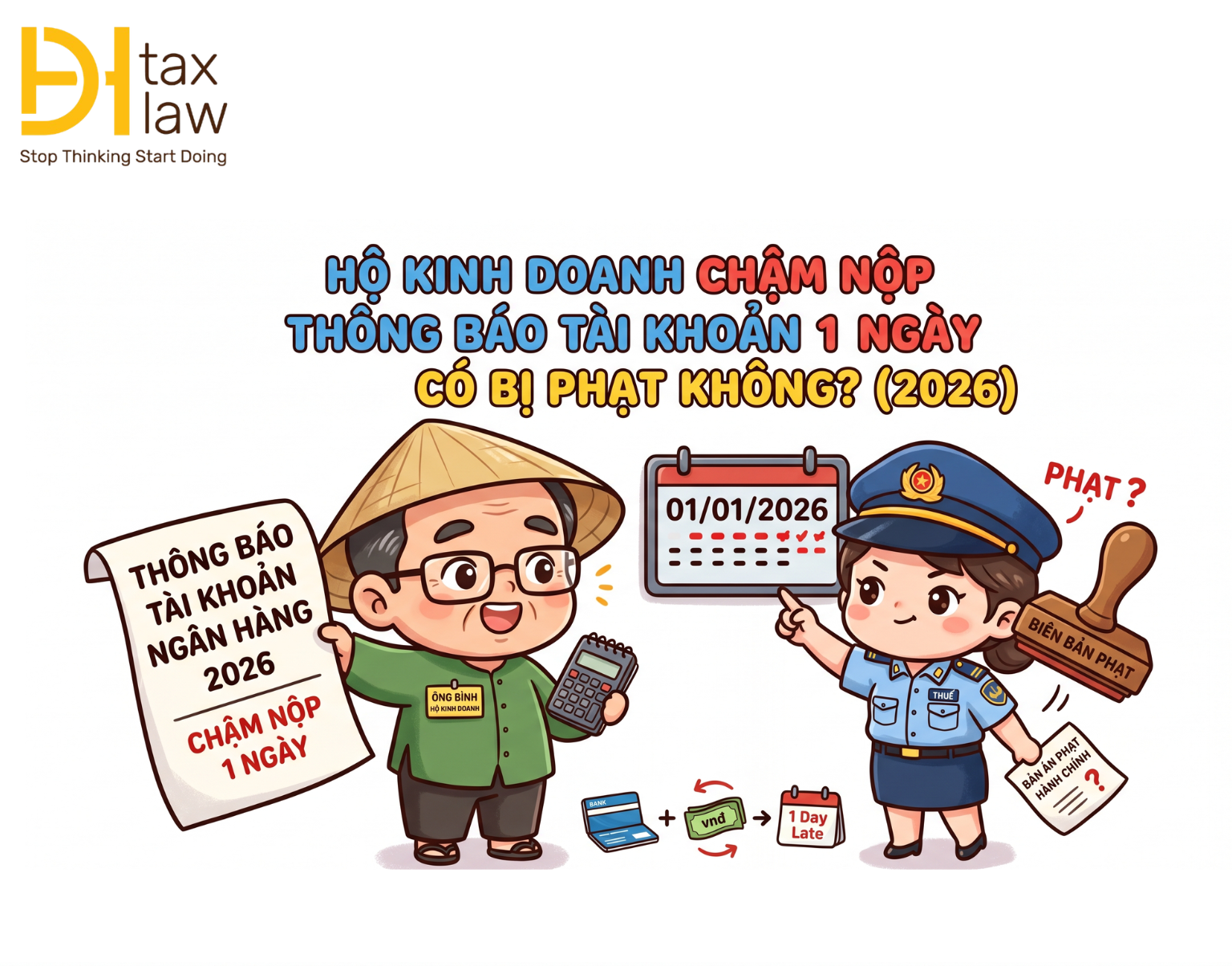 Việc thông báo số tài khoản ngân hàng hoặc ví điện tử với cơ quan thuế là nghĩa vụ quan trọng của hộ kinh doanh. Tuy nhiên, trong thực tế nhiều trường hợp nộp chậm do sơ suất. Vậy nếu chậm nộp thông báo 01 ngày làm việc thì có bị xử phạt không?