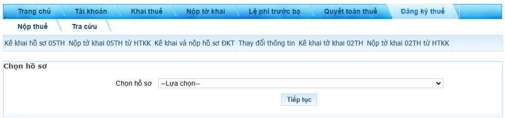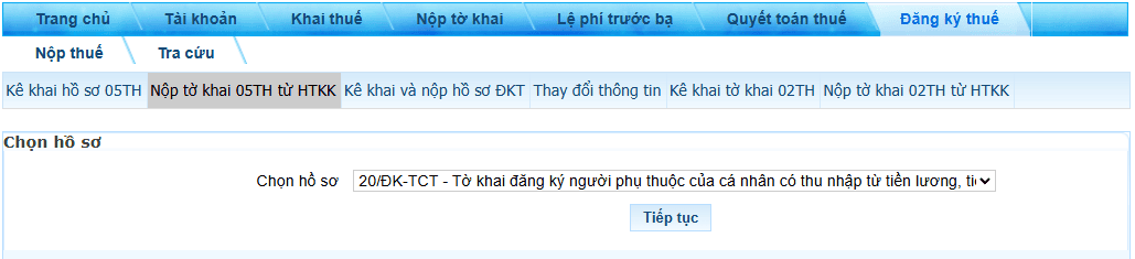 Bước 4: Chọn hồ sơ là “20-ĐK-TCT Tờ khai đăng ký thuế tổng hợp cho người phụ thuộc của cá nhân có thu nhập từ tiền lương, tiền công”