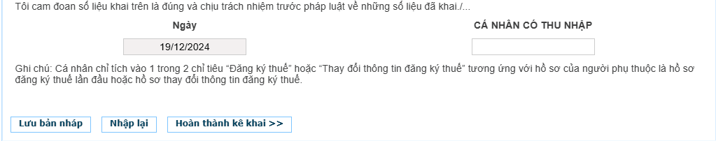 Bước 6: Sau đó chọn “Hoàn thành kê khai” => “Nộp hồ sơ đăng ký thuế”