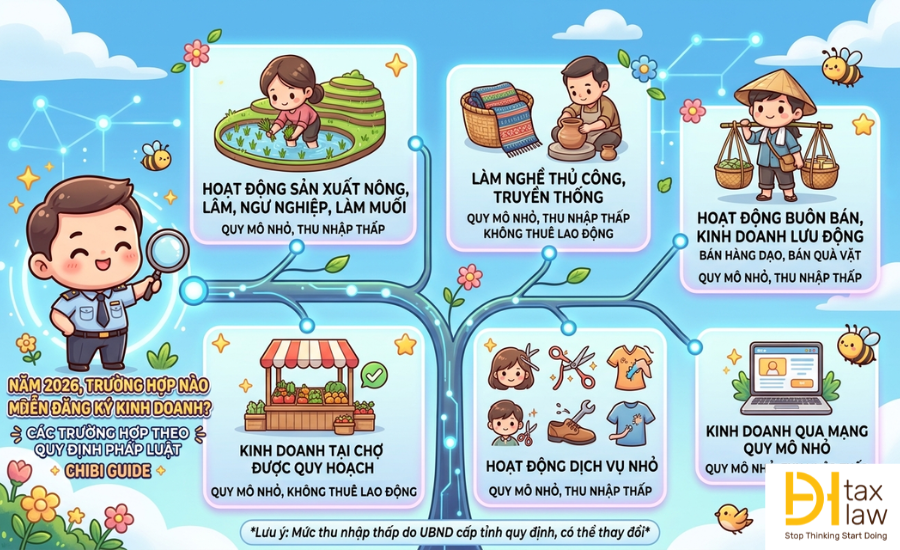 1. Năm 2026, trường hợp nào hộ kinh doanh được miễn đăng ký kinh doanh?
